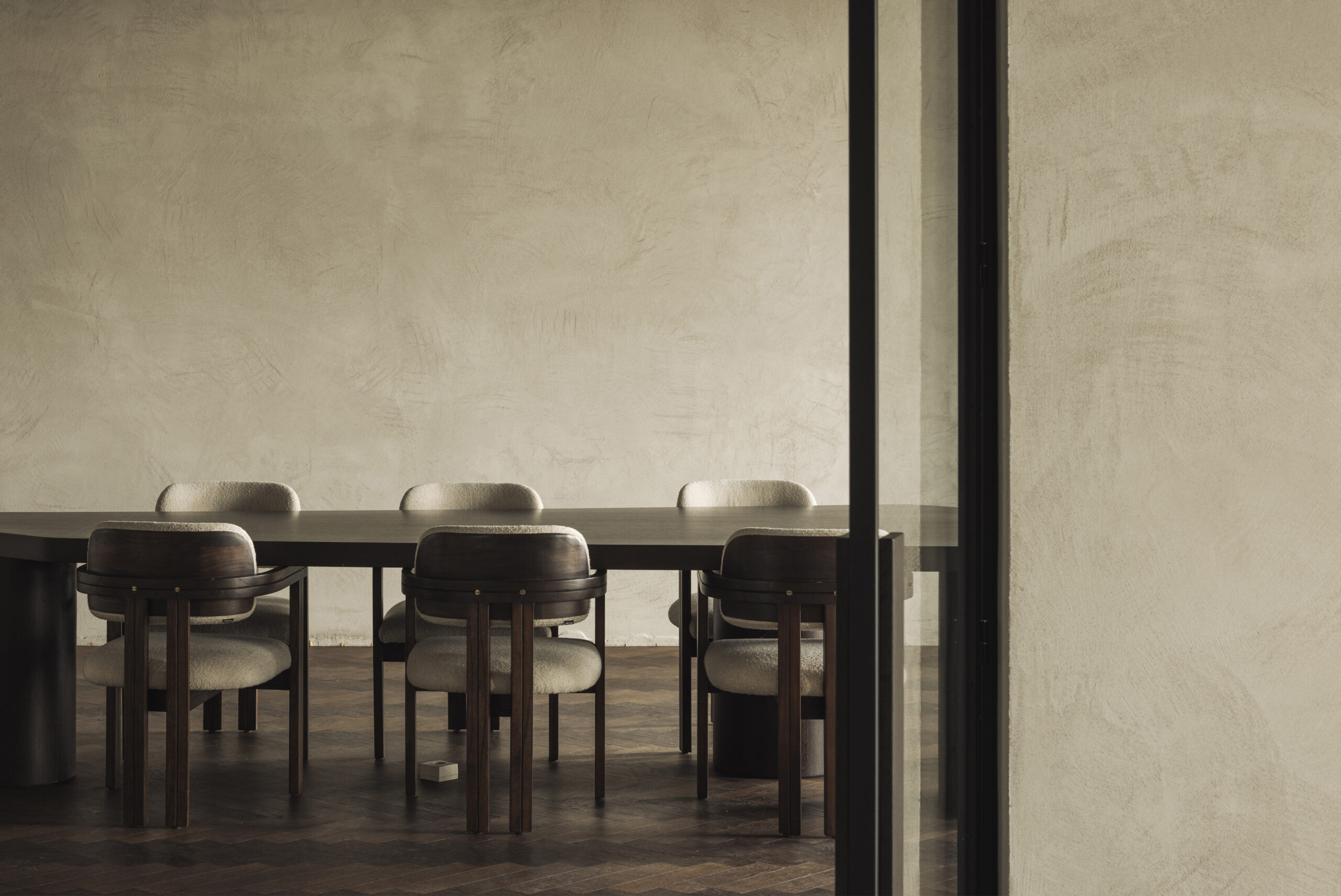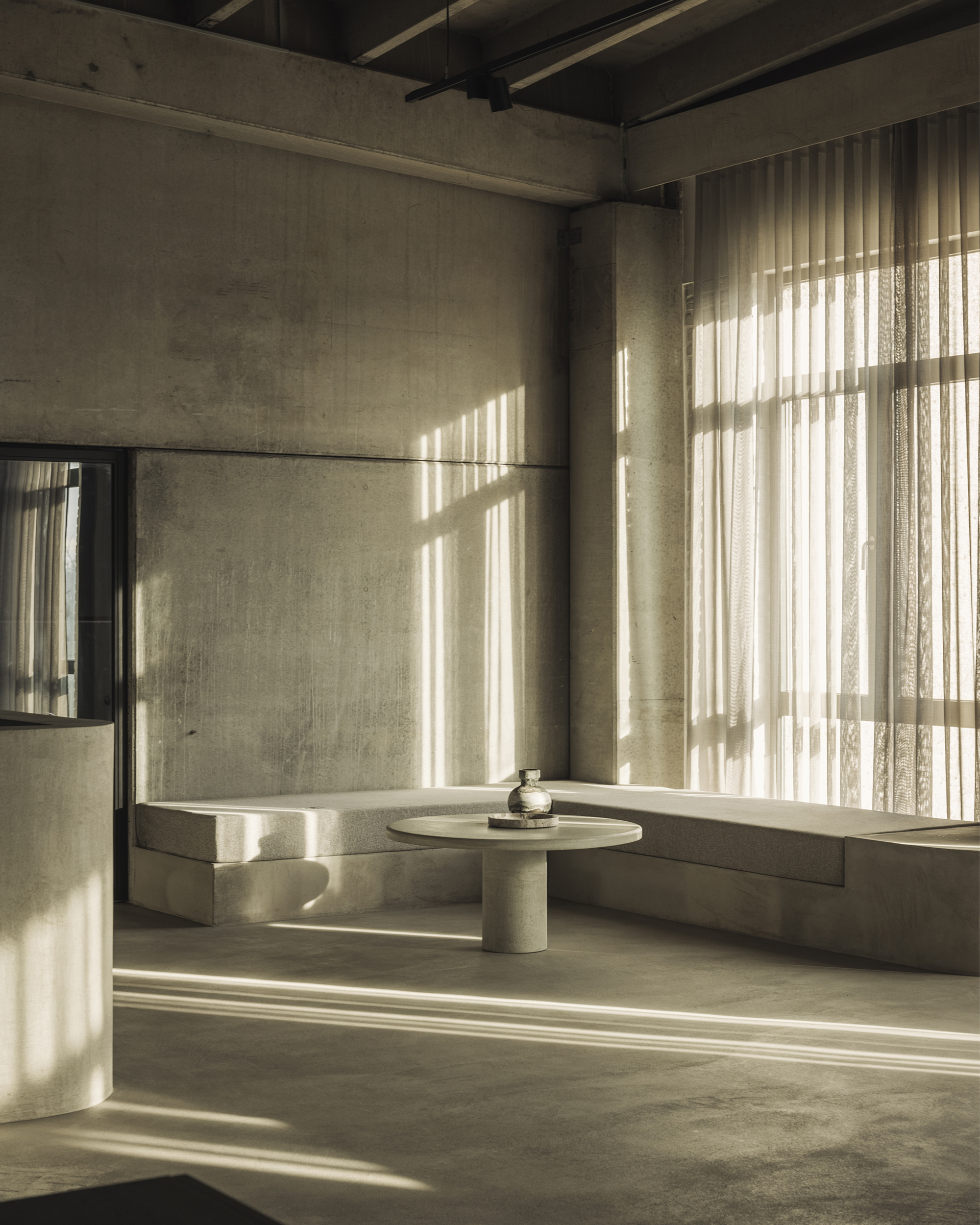 The combination of subtle brutalist influences with a refined minimalist approach defines the character of the office. The result is a calm yet expressive workspace that reflects the studio’s vision: minimal, architectural and quietly elegant.